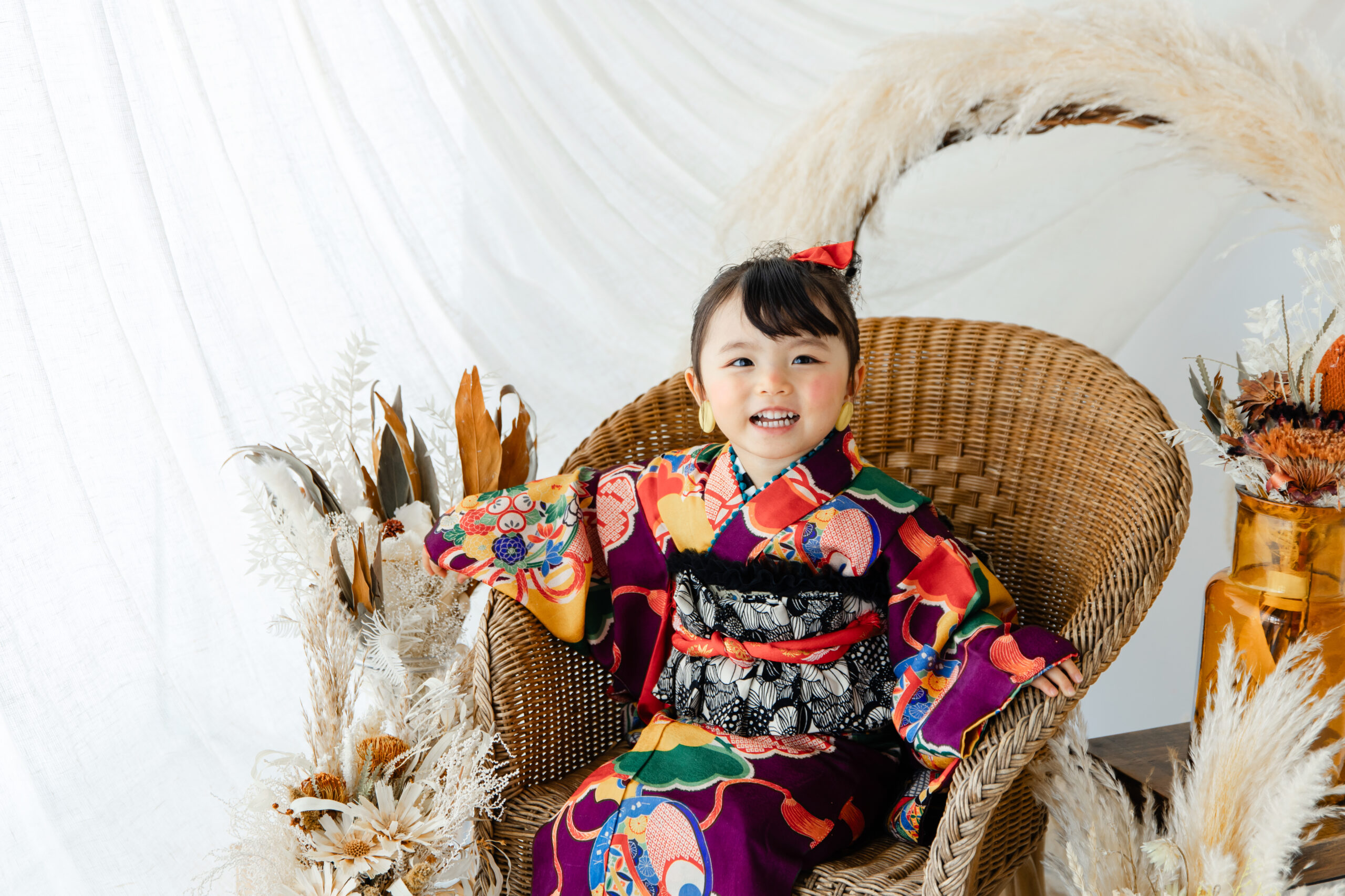 前撮りはポップなレトロ着物で決まり!(七五三撮影)